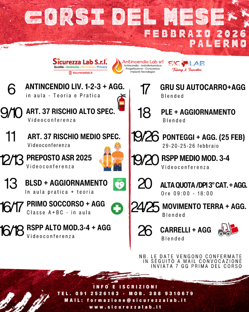 Il corso è valido per l'acquisizione della qualifica di formatore ai sensi del D.I. 6/03/2013. Valido ai fini dell'aggiornamento RSPP/ASPP (ASR 07/07/16).